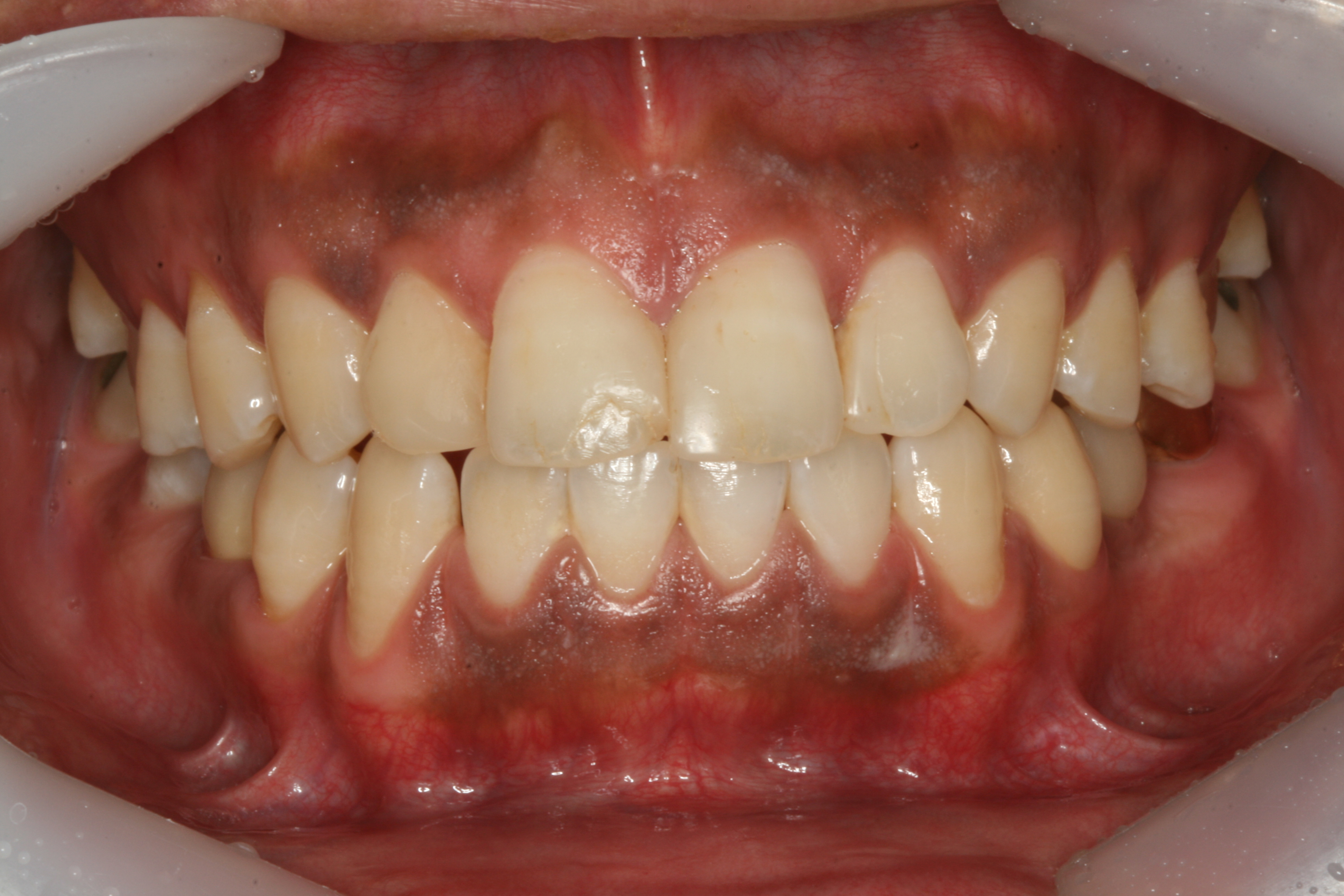 아래 사진은 과도한 멜라닌 색소의 침착으로 검은 잇몸을 보실 수 있습니다