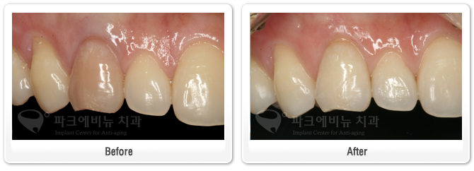 실활치 미백 전. 후 사진입니다. 어두웠던 치아가 감쪽같이 환해졌죠? ^^