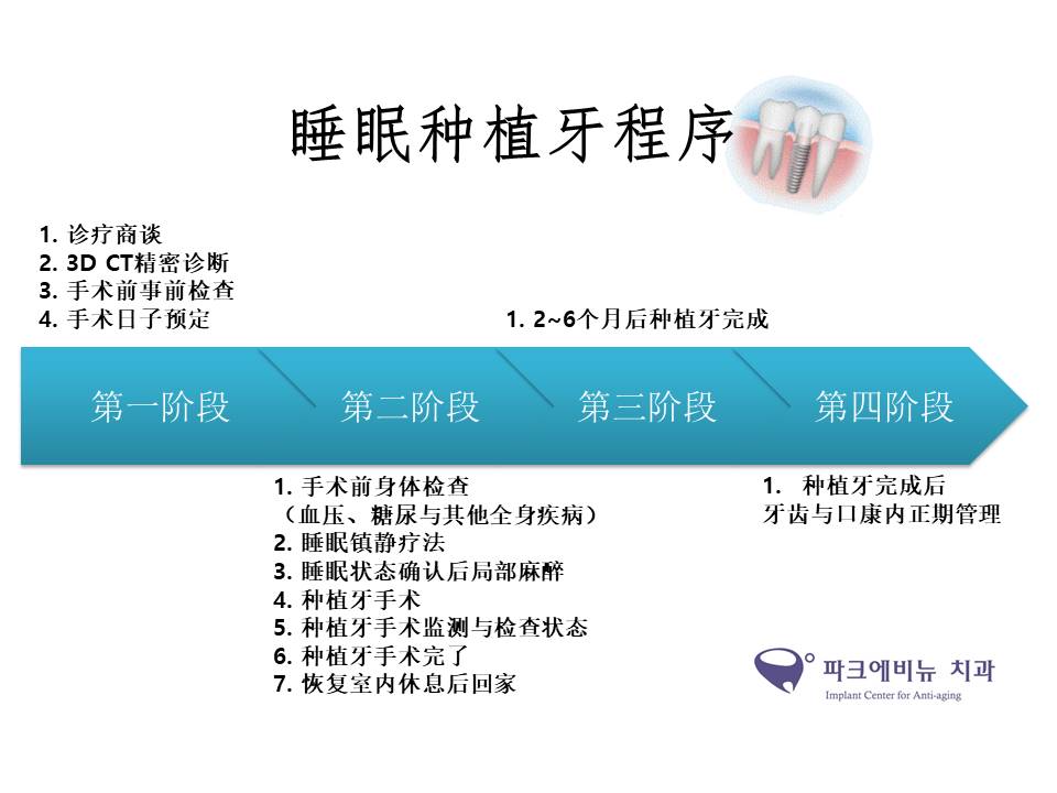 - 58对于不喜欢牙科的患者好消息! 睡眠种植牙是对于种植牙手术害怕,痛症,机械噪音等这种许多原因不能接受手术的患者开始的手术方式。睡觉的状态上没有痛症,害怕时接受种植牙手术的方式。跟全身麻醉不同有意识的状态上进行,非常平安的精神状态比较安全的手术方式后遗症也很少。最近普遍化的手术。 睡眠种植牙是通过静脉注射假睡眠状态上一些麻醉手术。这种睡眠种植牙手术是进行时几乎没有手术中的记忆,非常舒服所以可以说镇静麻醉。