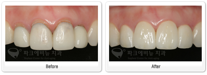 这位患者内院为了交替很久以前治疗的三颗门牙补牙(牙桥)。