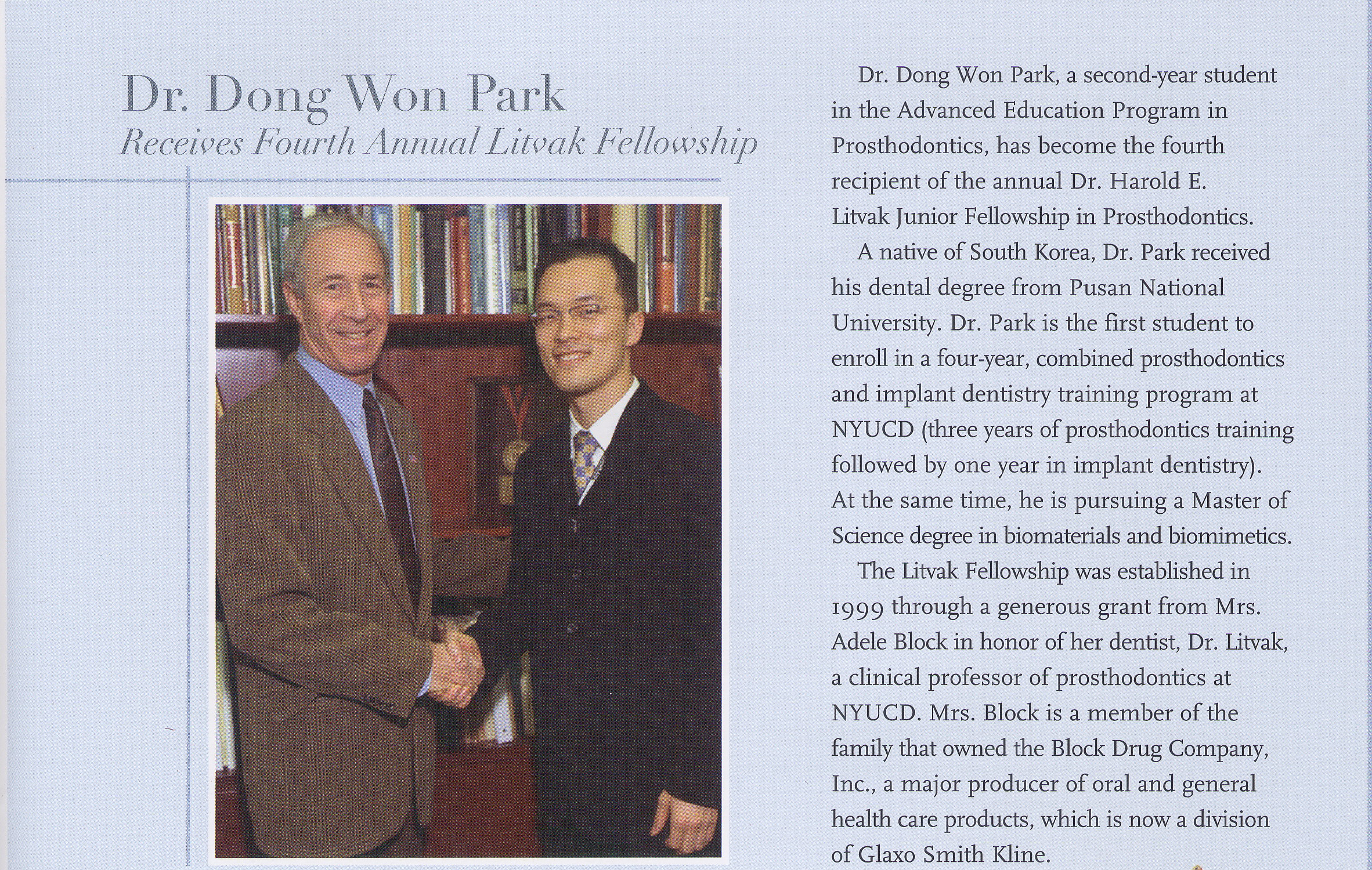 뉴욕대학교 보철과 Dr.Litvak 장학금 수여